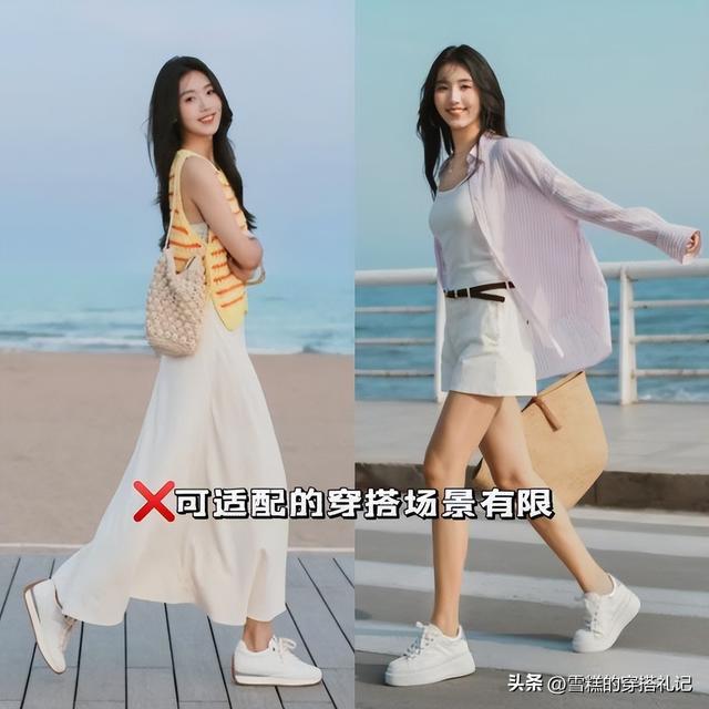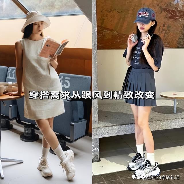 运动鞋的厚底设计看似能增高,实则容易截断腿部线条,让脚踝显得粗壮,尤其搭配裙装、阔腿裤时,厚重鞋底会压垮整体造型,显得拖沓累赘。对于追求精致感的女性而言,运动鞋很难适配职场正装、轻礼服、碎花裙等优雅造型,局限于休闲场景。